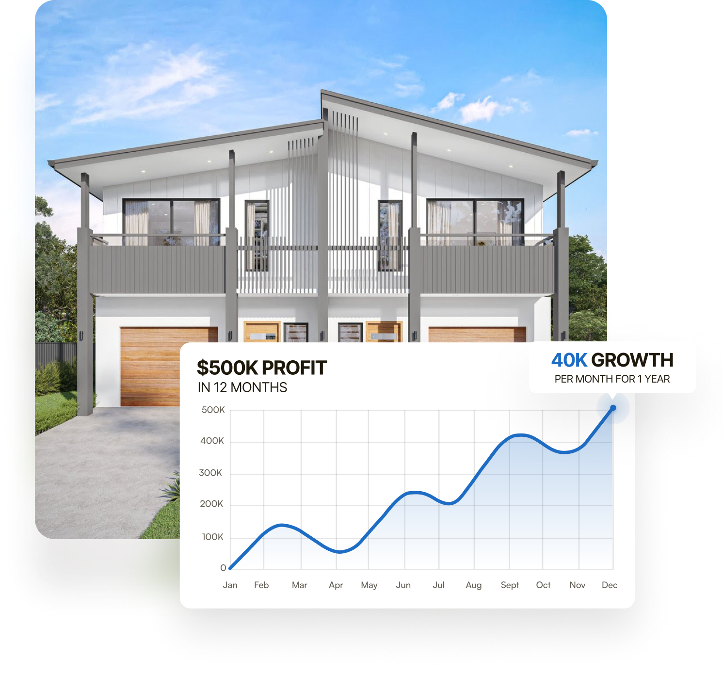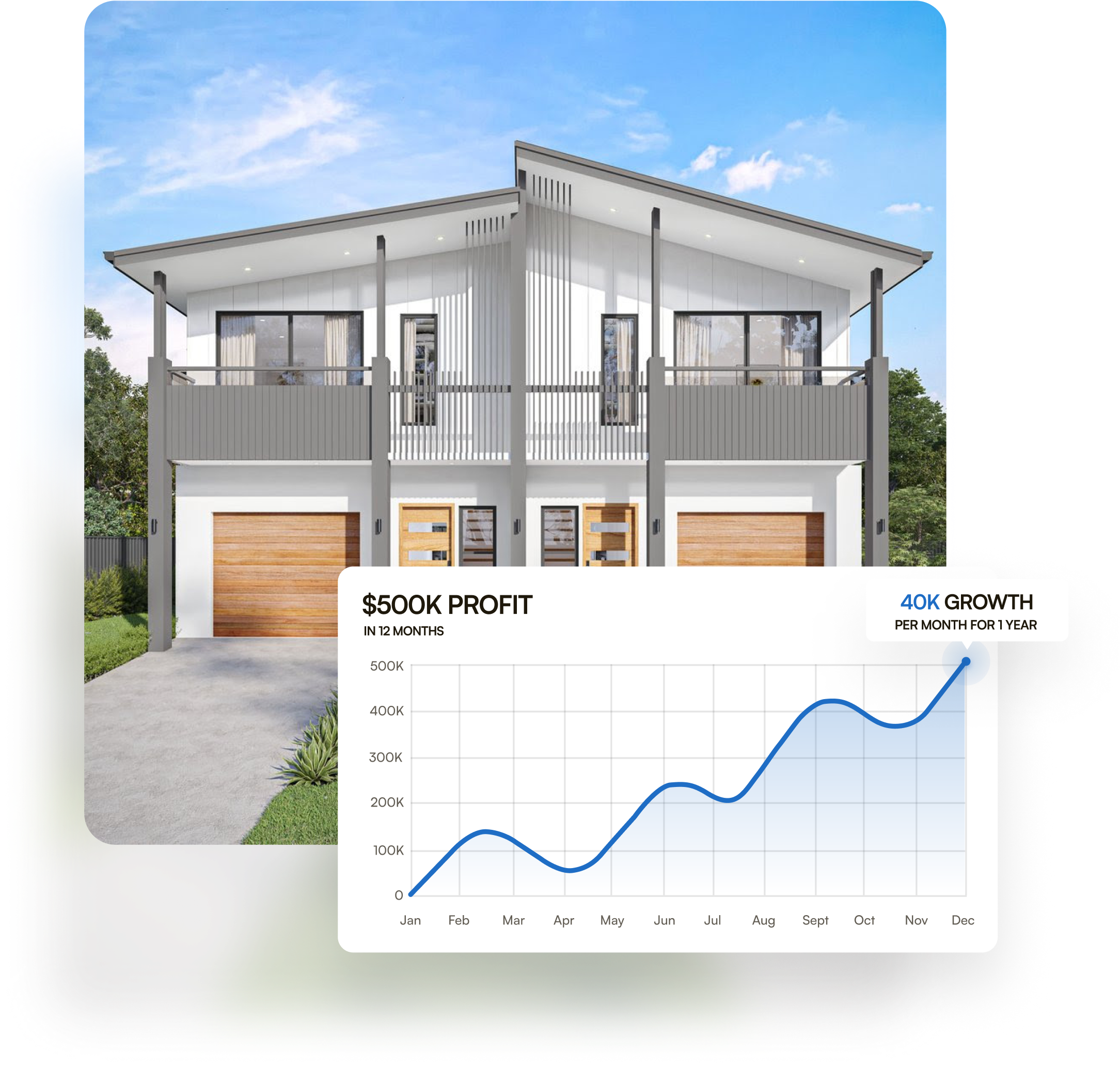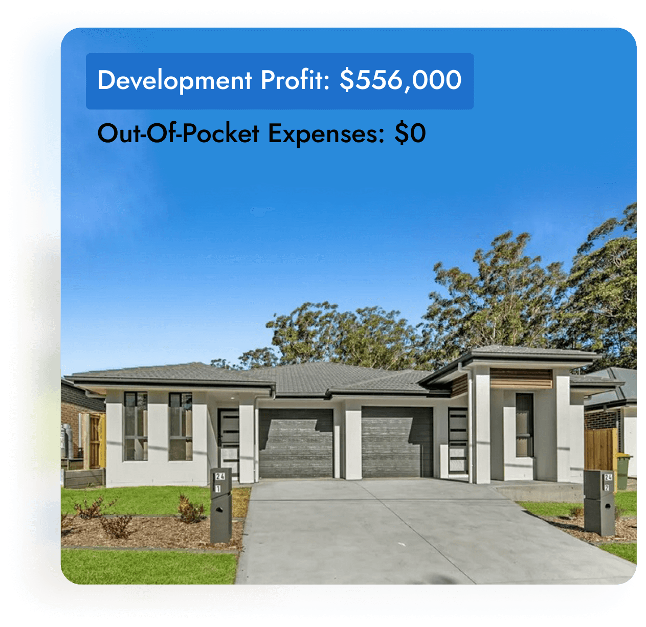Development Profits Of $300,000 - $500,000 In 12 Months* Instead of playing the guessing game with negatively geared properties, or being at the mercy of market fluctuations, a DUPLEX creates equity in both units to give you maximum ROI.